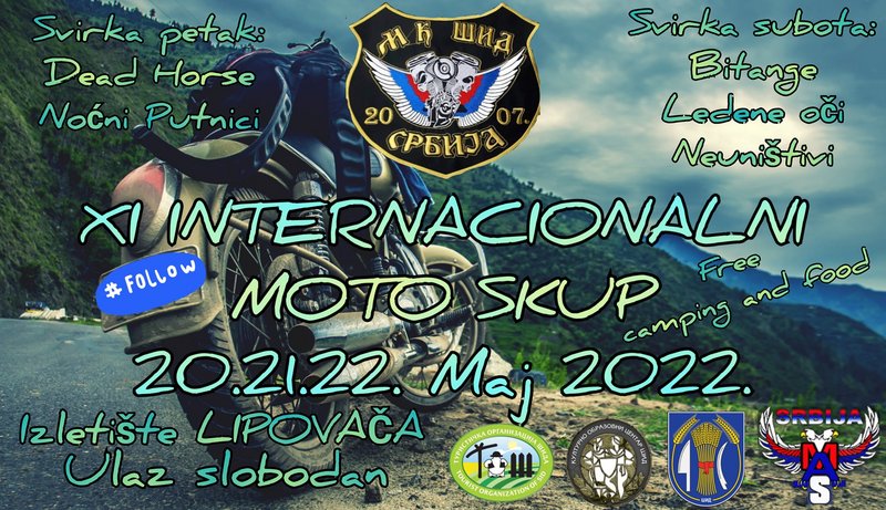 Pozivamo Vas 20.21. i 22.maja 2022. na 11. MOTO SKUP moto kluba Šid, da vašim prisustvom uveličate naš događaj i takođe nas podržite u tome!