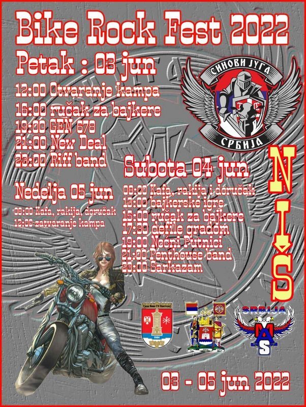 Odg: 3,4,5 JUN 2022 - ,,BIKE ROCK FEST" - II MOTO SKUP MK SINOVI JUGA (MAS) - NIŠ