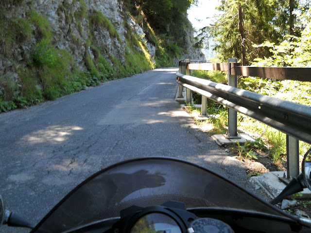 Iz Bonadusa uzan prav put kroz predivan pejzaz.....pa se ulazi u sumu....predivno.....da nisam vec prosao tuda sprzio bih se na kraju sume ...ovako znam sta sledi ali me groznica i dalje drma......razmisljam da se vratim....znam da me ocekuju sati i sati voznje po serpentinama i losem asfaltu.....u posvesti Velimlje vice....a priroda...a lepote....a dozivljaj....a avanturisticki duh.....hm.....dolazi vidikovac i vise nema dileme....idemo Velimlje....nego platices jos jedno pivo za ovo....sta mi radi covek.....
