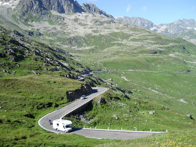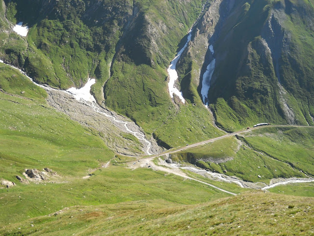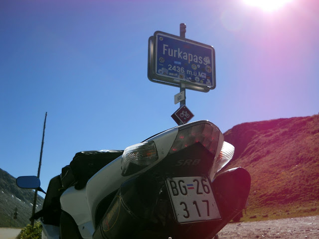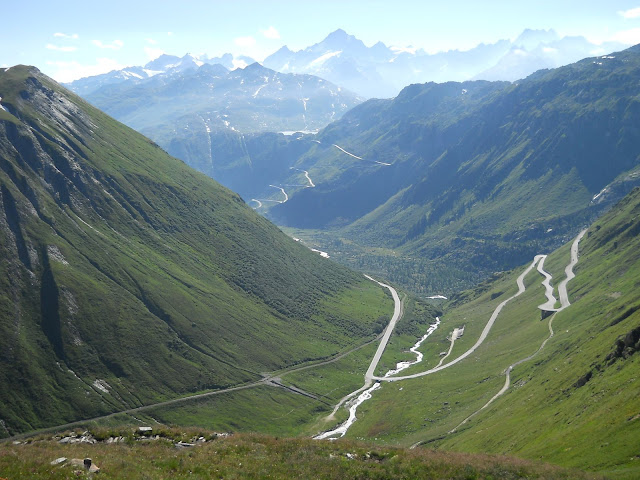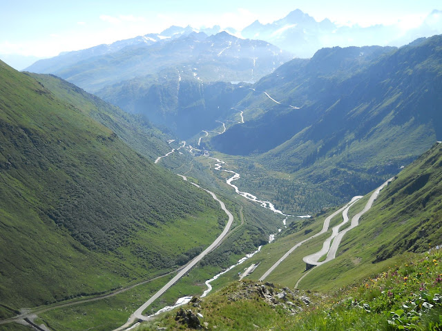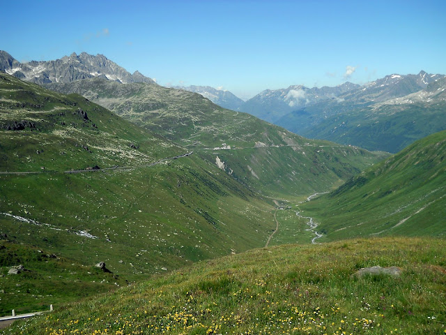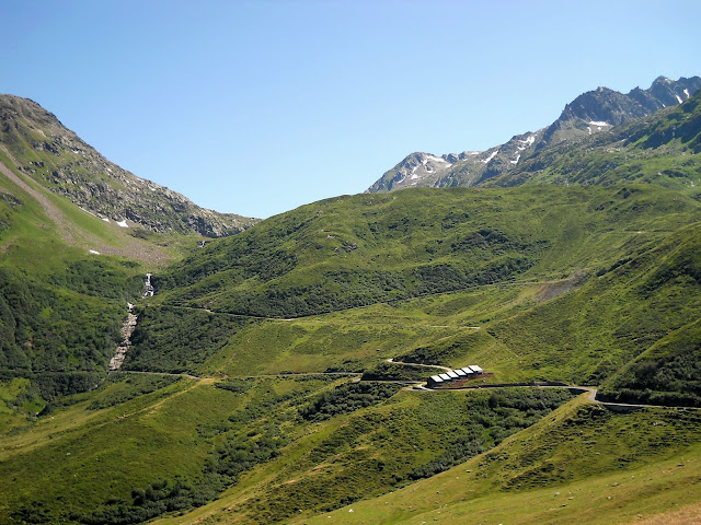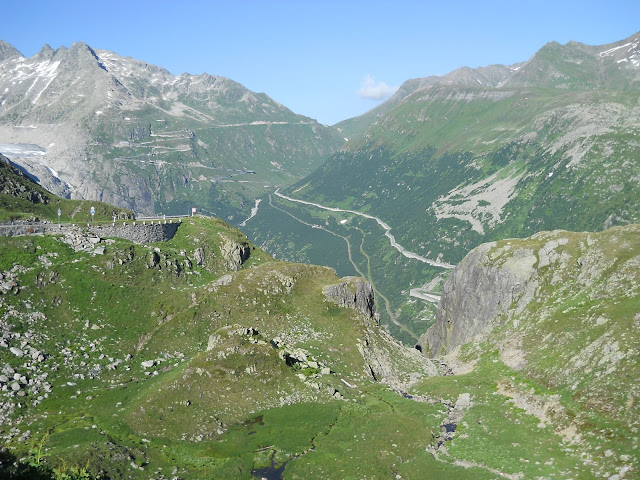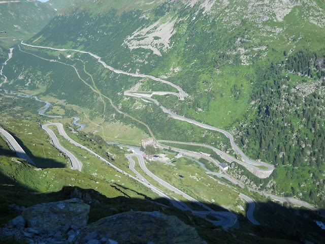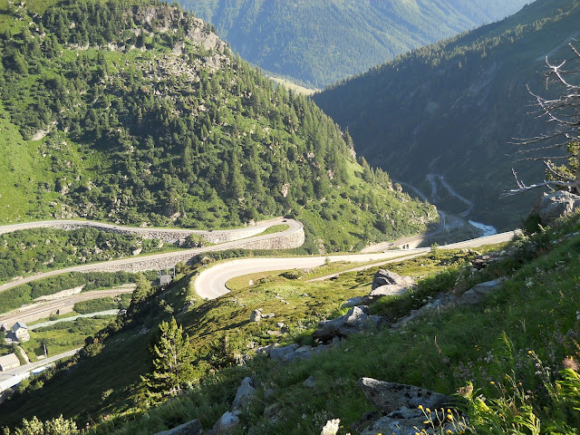 Vracam se istim putem do famoznog kruznog toka...najradije bih isao desno, siguran sam da i tamo ima neko iznenadjenje ali vreme mi ne dozvoljava....jednom cu ako budem imao drustvo ostati gore par dana i lepo obici sve sto nisam.......dakle skrecemo levo...i ubrzo se nalazimo u podnozju cuvenog Furkapassa gde su snimani pojedini kadrovi filma Goldfinger iz serijala o agentu 007.....
