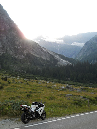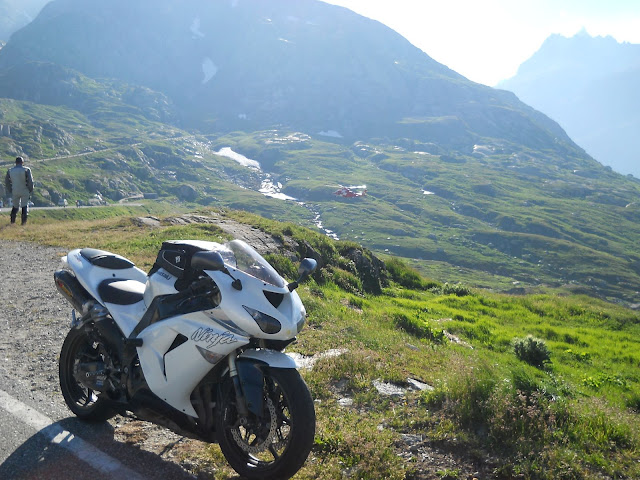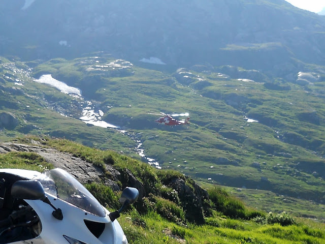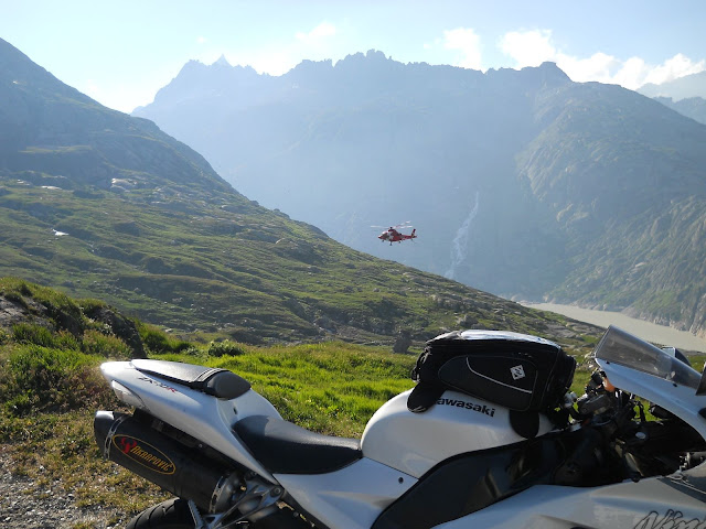Muvam se tako po vrhu Grimsela, nesmeta mi vise ni vetar....vece je predivno uzivam u vazduhu...u pogledu....cak se i jedan helikopter muva tuda...to mi malo sumljivo i parkiram motor na vrh da imam bolji pogled....