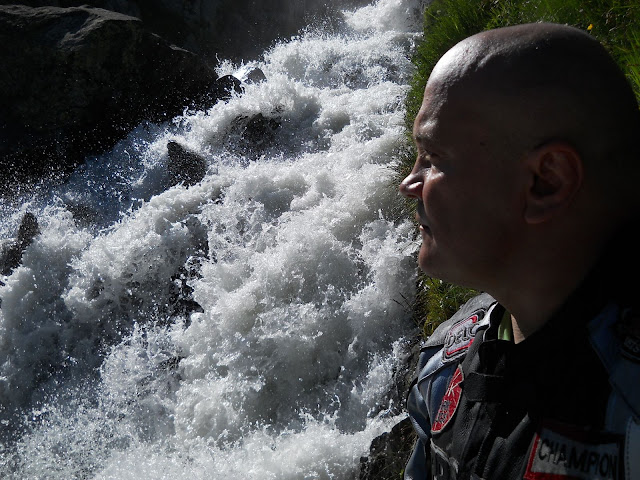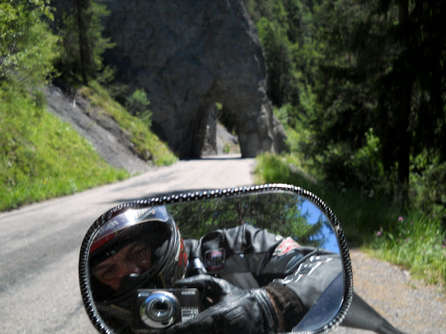 Odatle pocinje extra uzani i los put ivicom kanjona.......na mnogo mesta voizite se ivicom provalije...moram da priznam da se ponekad osecam nelagodno...ali tu ima toliko brace na motorima koju treba pozdravljati tako da ushicenost zamenjuje strah a prioda....sta reci predivno.....opet mi u mozgu Velimlje.....kaze covek...jbga ovaj put jre rodjen za enduro...vidis da nema ni asfalta na puno mesta.....a ti oces bas R-a.....he.....pa mora nesto da bude i po mome...uvalio si mi 55 passova, izvora potoka i izletista po okolini u mozak .....a....jos jedno pivo....nego za pravo cudo vetar je ovde stao.....ali nije to jos visina....