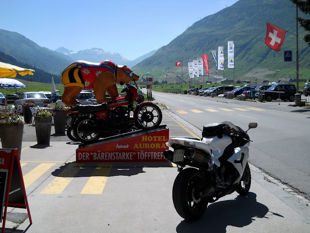 Kada se predje preko passa polako se u dolini ukazuje i grad sa druge strane Andermatt......nego mnogo nesto reklamiraju medvede mora da ih ima tuda.....