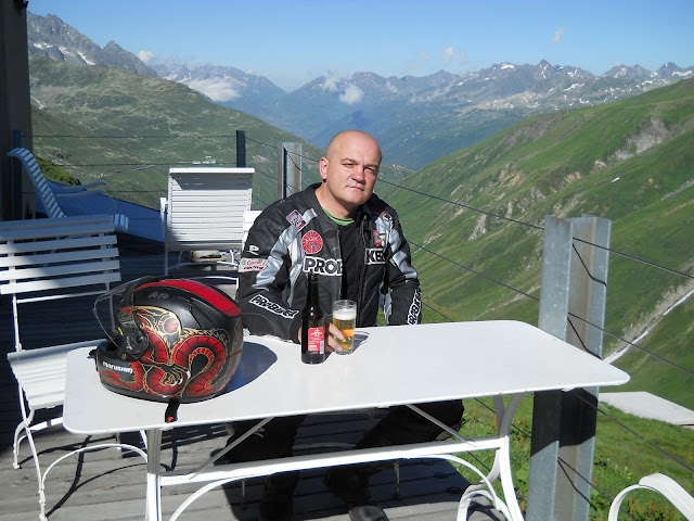 Tako stizem i do starog hotela na vrhu prelaza........sa druge strane neodolljiv restoran vidikovac.....bas i nepijem ali kako odoleti i ovde nepopiti pice....mislim na pivo da bi sve bilo u tonu sok mi nekako izlazi iz sablona...motocikla , krivina, prelaza....itd.....