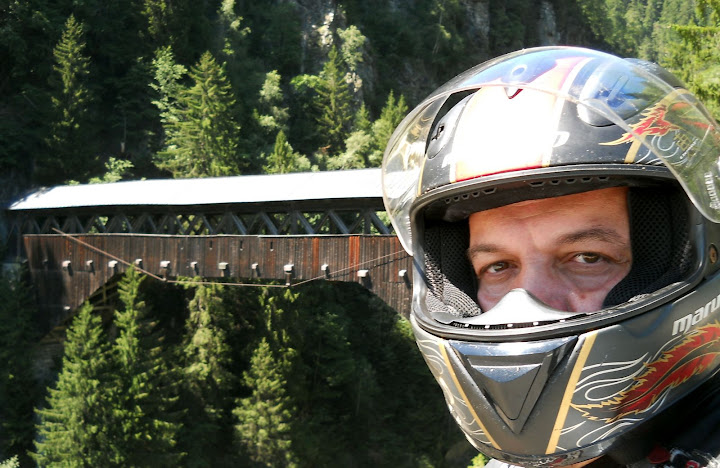 Polako se priblizavam Disentisu ....na putu nailazim na most ustvari tri mosta....zeleznicki....za vozila i stari drveni......koga interesuje vise moze mozda naci na internetu nesto na osnovu table...ja zasada nastavljam put.....