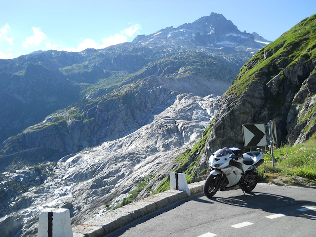 U Gletchu se put odvaja opet na dve strane.....rado bih nastavio pravo i video sta je tamo ali moram desno prema Grimselu.....vreme tako nalaze...cak se ni Velimlje nebuni...kaze drugi put cemo zajedno nebrini.....