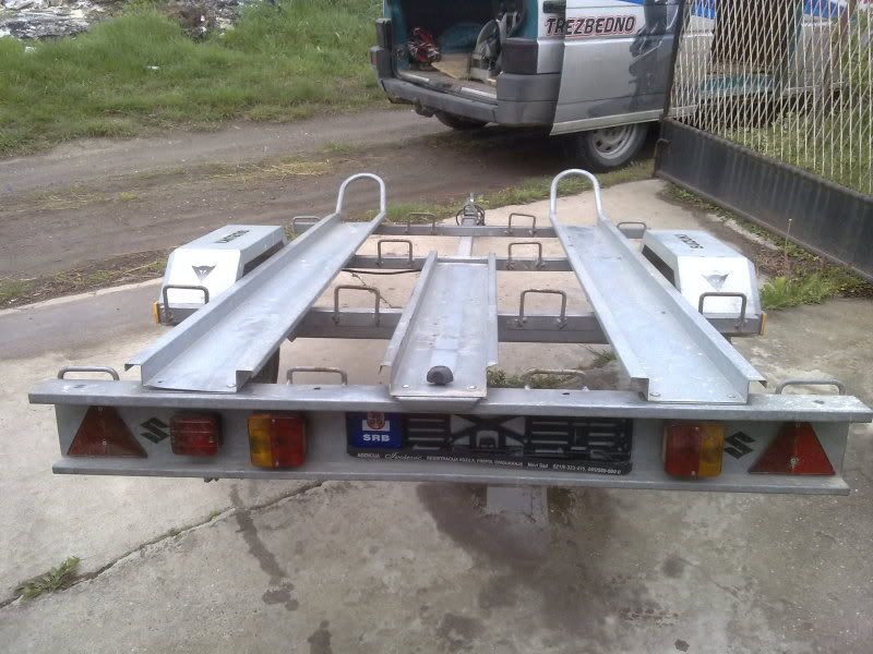 Oglas je za drugara pa vise informacija mozete dobiti od njega a od mene prikolica za 2 motora 2007 godiste, komplet struja sve radi, dva motora odjednom u sredini na slikama je rampa za navoz. Kupljena u Spaniji vodi se na drugara koji je prodaje, svi papiri treba da se carini i registruje, sto je nesto sitno. Koliko je to sitno ne znam, al znam prikolica ima svoj broj pa ne mora na pus-ovanje i da cena 500e. Prikolica se nalazi u Novom Sadu sve ostale inormacije i ponude na tell 063/8961722 Gregor.