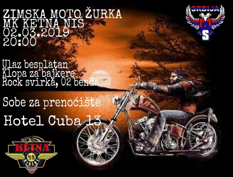 Zimska moto žurka MK Ketna (MAS) održaće se 02.03.2019 u hotelu Cuba 13 u Nišu.