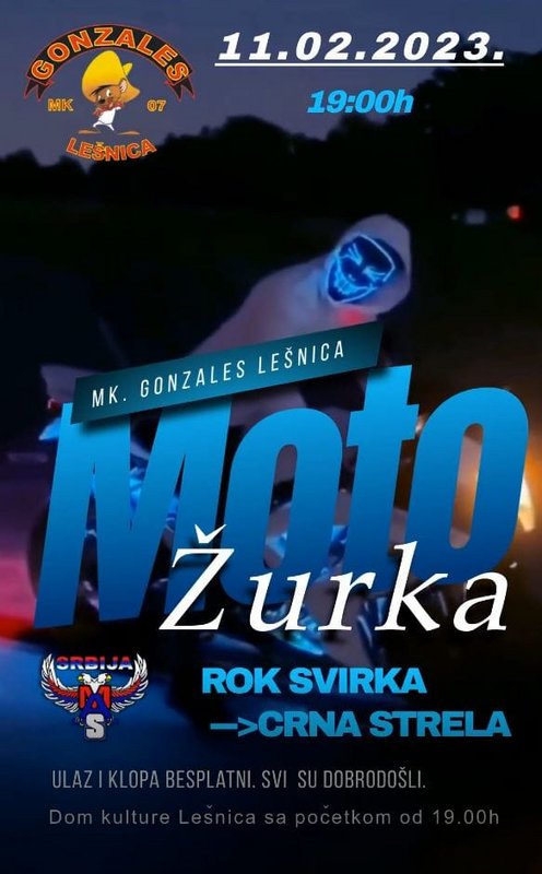 Tema: 11 FEBRUAR 2023 - MOTO ŽURKA MOTO KLUB GONZALES (MAS) - LEŠNICA (Pročitano 1056 puta)