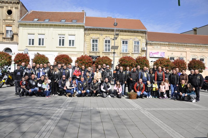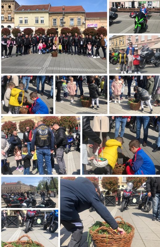 Bajkerska tradicionalna podela uskršnjih jaja na gradskom trgu u Sremskoj Mitrovici u organizaciji Moto Kluba Srem (MAS).