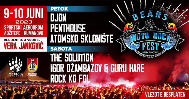 Tema: 9,10 JUN 2023 - BEARS MOTO ROCK FEST - MK BEARS - KUMANOVO, SEVERNA MAKEDONIJA (Pročitano 1400 puta)