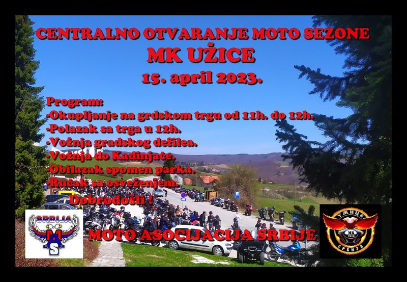 Odg: 15 APRIL 2023 - ,,MAS CENTRALNO OTVARANJE MOTO SEZONE 2023" - UŽICE