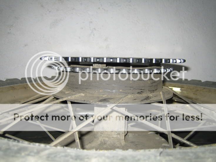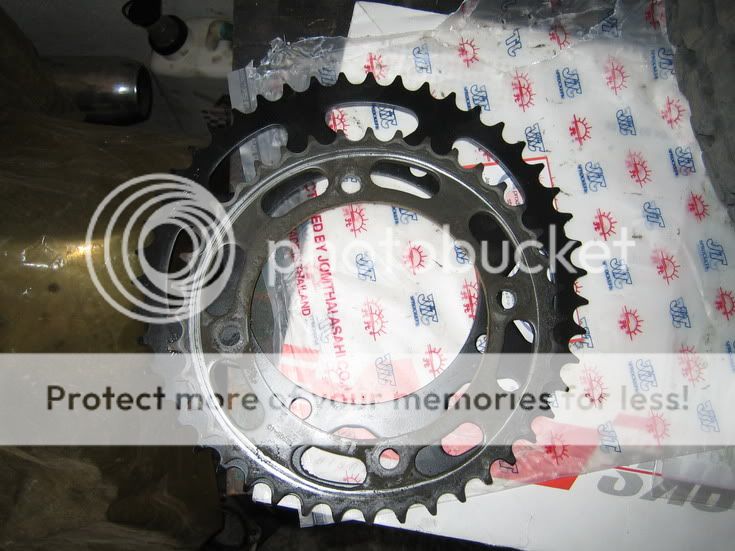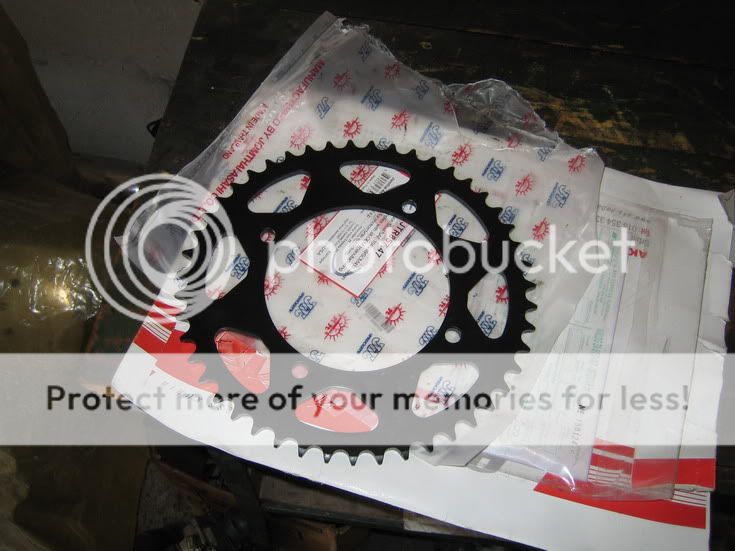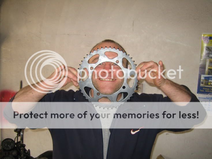 Dalje slike su izostale jer lanac podmazujem insison a nije skoro pran lanac pa smo bili umazani do laktova jer smo morali da produžujemo lanac... Stari lančanik nije bio loš ali je imao samo 40 zubaca, dok nov ima 47! Nije bilo para da se zameni i prednji ovoga puta, tako da je prednji ostao na starom - ne znam koliko, nisam brojao... Za tih 7 zubaca više, lanac je morao da se produži za 4 zubca. Dovoljno je bilo i 3 al mora da bude paran broj....