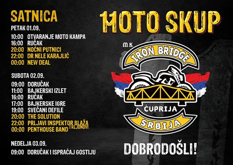 Odg: 1,2,3 SEPTEMBAR 2023 - XI MOTO SKUP ,,IRON BRIDGE" (MAS) - ĆUPRIJA