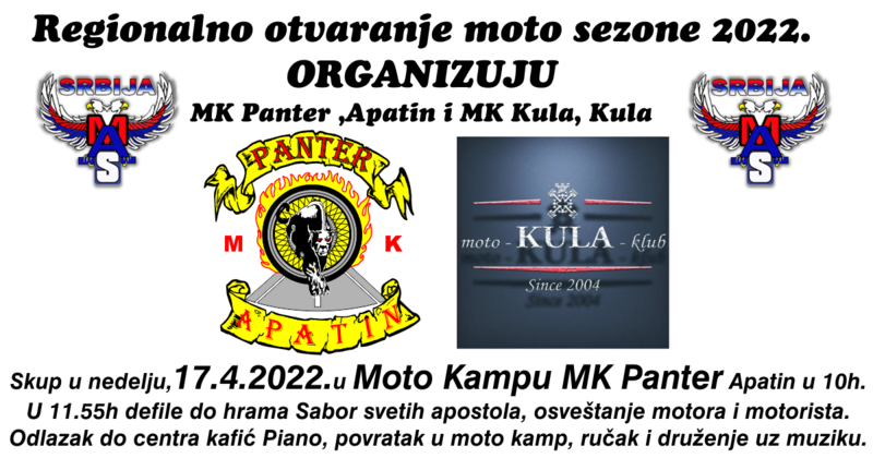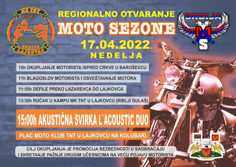 17 APRIL 2022 - I ove godine tradicionalno Moto Asocijacija Srbije organizuje ,,REGIONALNO OTVARANJE MOTO SEZONE 2022"