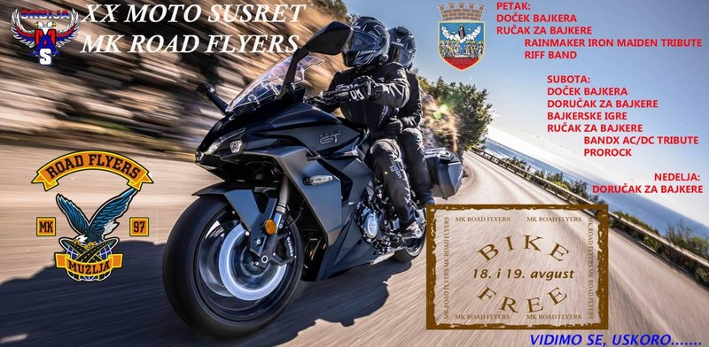 Odg: 18,19,20 AVGUST 2023 - XX MOTO SKUP MK ROAD FLYERS (MAS) - MUŽLJA