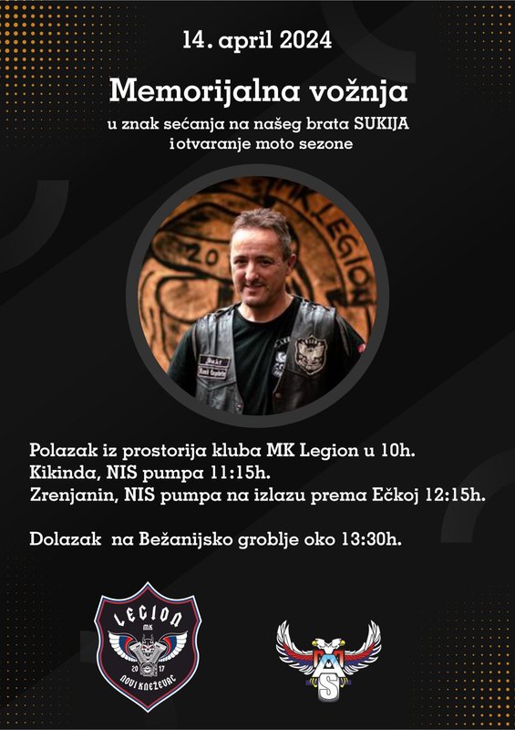 Prilikom otvaranje moto sezone, organizujemo memorijalnu vožnju, za našeg pokojnog brata Šukija.