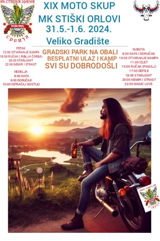 Odg: 31 MAJ & 1,2 JUN 2024 - XIX MOTO SKUP MK STIŠKI ORLOVI (MAS) - VELIKO GRADIŠTE