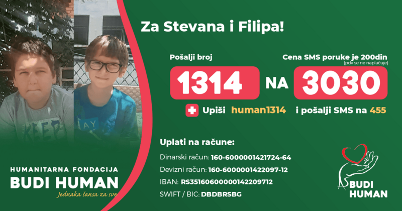 prikuplja novčana sredstva za Stevana (g.r. 2011) i Filipa Stojanovića (g.r 2014)
